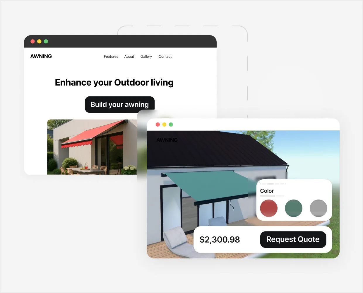 Go beyond static visuals. Let buyers experience how your awnings work in real life: