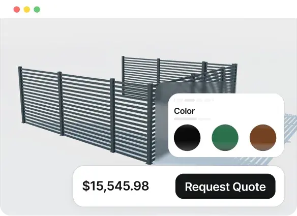 The only 3D fence configurator that can go live in 7 days. We set it up with your branding and products, then it runs on autopilot, handling designs, pricing, and quotes for you.
