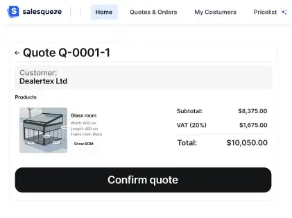 Buyers design their exact glass room live. By the time they contact you, they’re already sold.