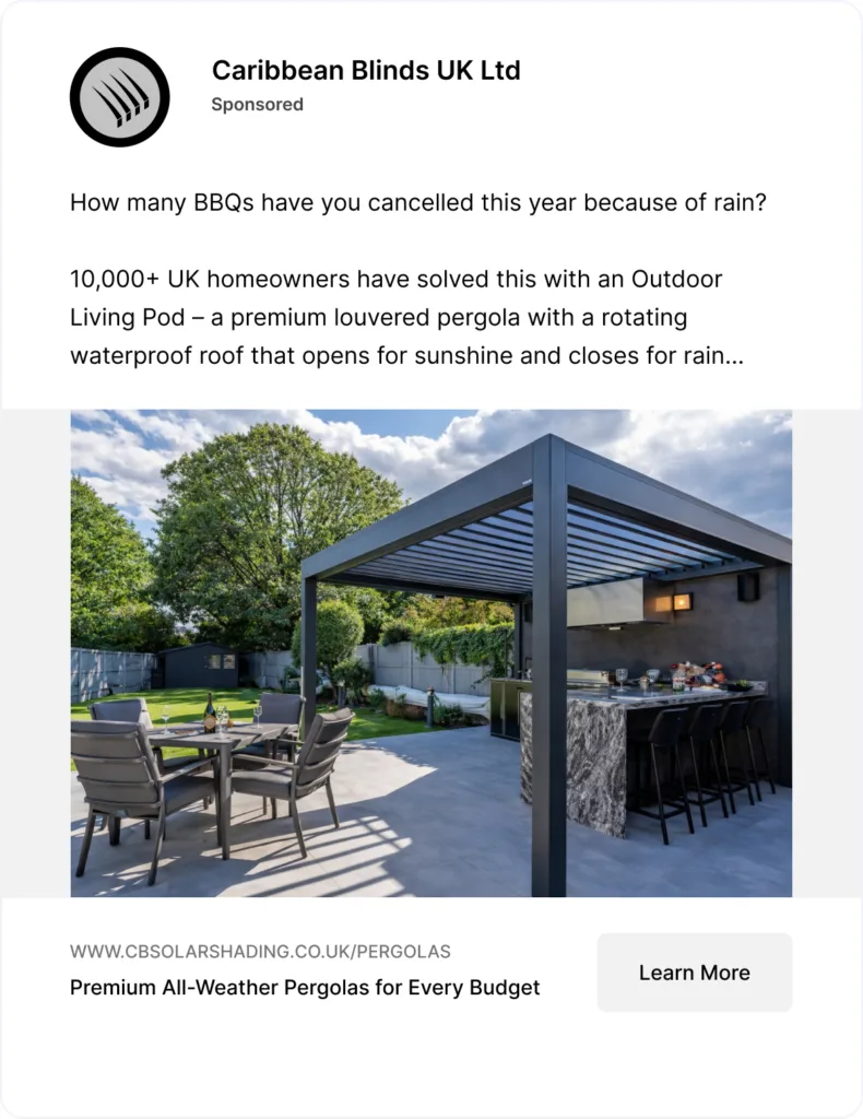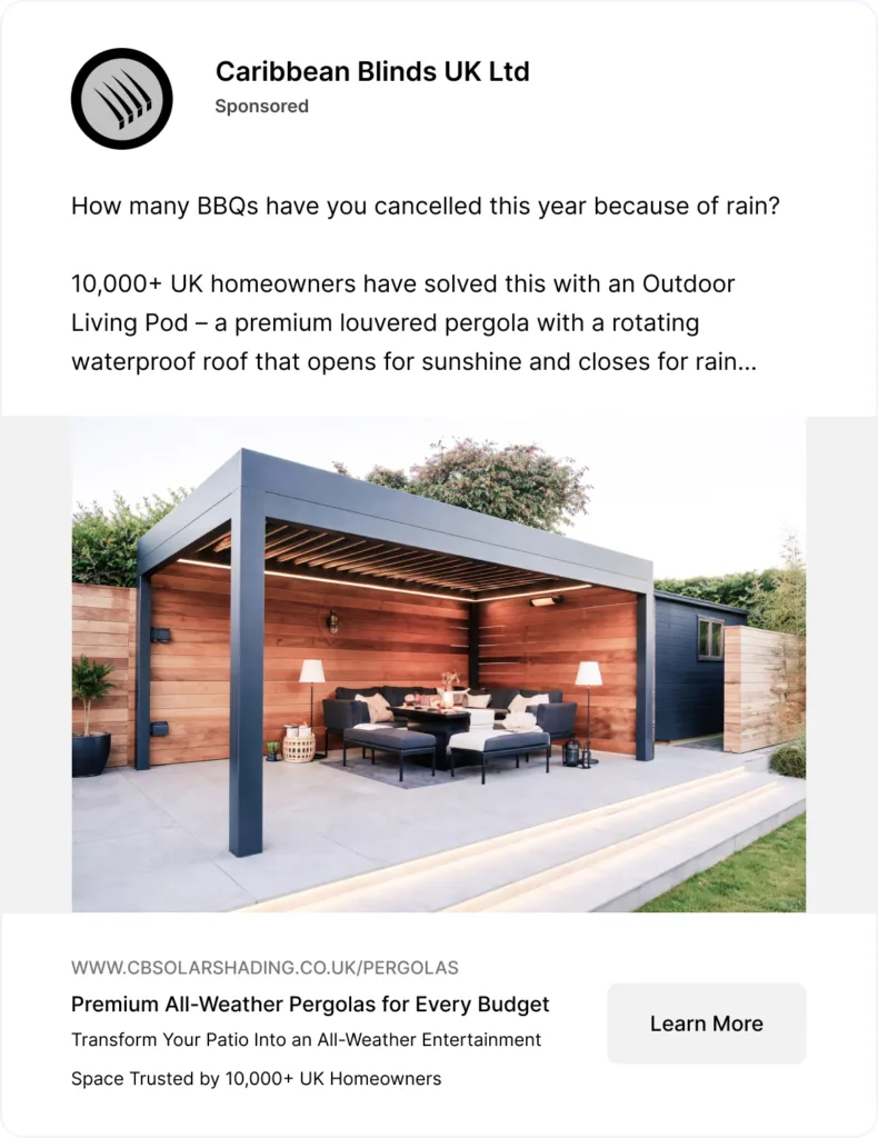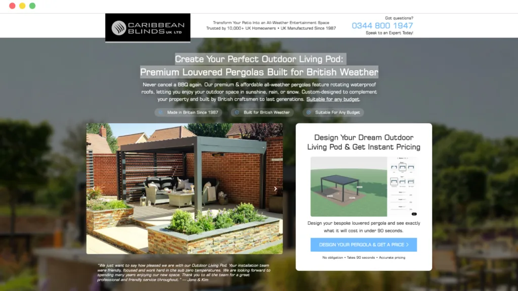Caribbean Blinds is a well-established, family-run UK business selling luxury outdoor shading products – louvered pergolas, awnings, and external blinds. With £10M+ in annual revenue, they’re known for premium quality and expert installations.