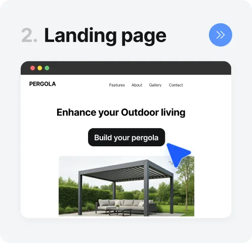 When someone clicked the ad, they landed on a dedicated page with one purpose: to get them excited and ready to use the 3D pergola configurator.
