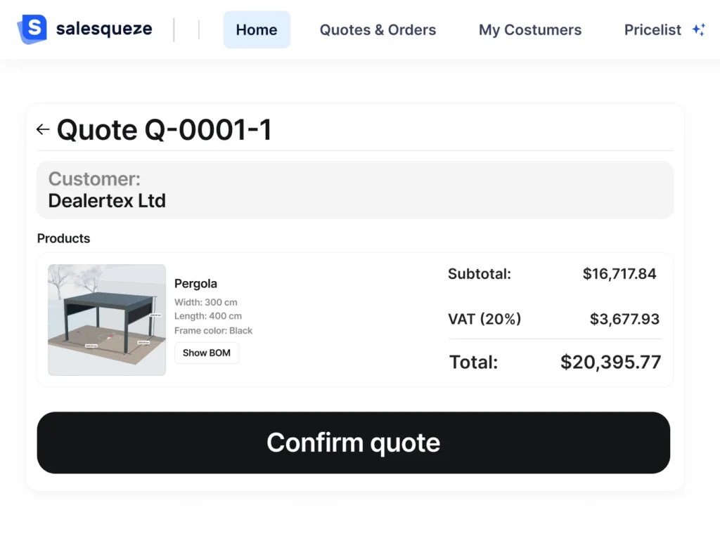 The 3D configurator saves a lot of time with low-quality leads, price calculations and quote preparation. We also closed 30 sales in just 90 days as a new pergola business on the market.