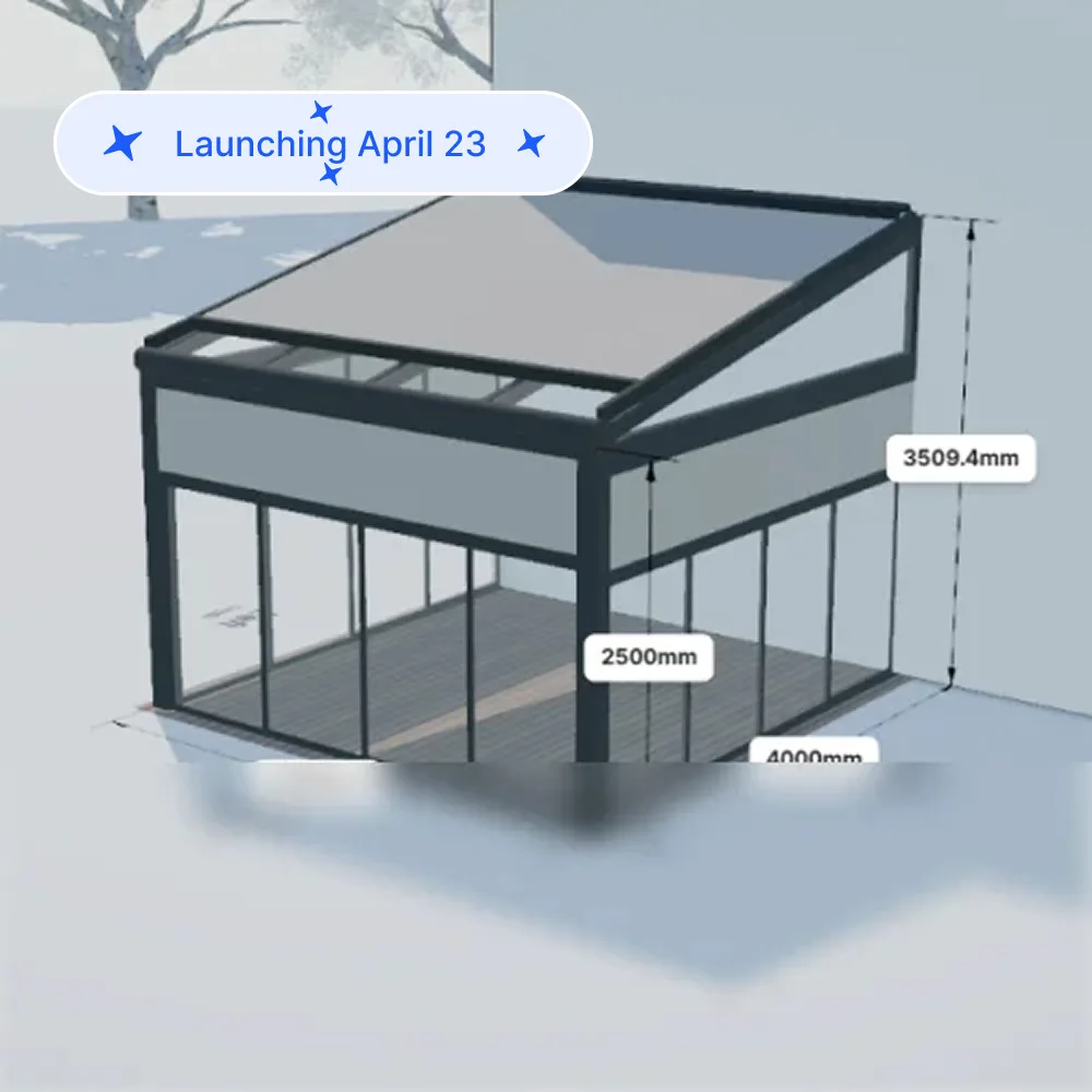 Your customer picks their pergola, veranda, garden room, awning, or carport. They configure it in 3D on your website. They see the price instantly. They book the site visit themselves.