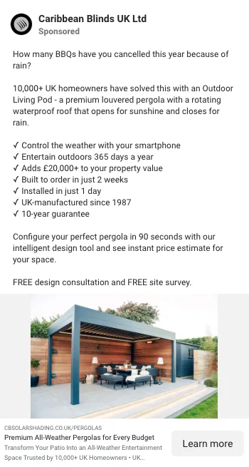 - Caribbean Blinds, a pergola manufacturer from the UK