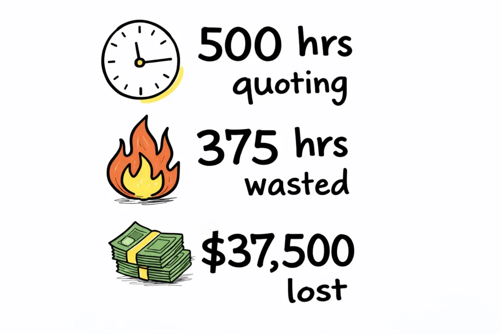 500 hours × 75% failure rate = 375 hours per year spent quoting leads that never buy.