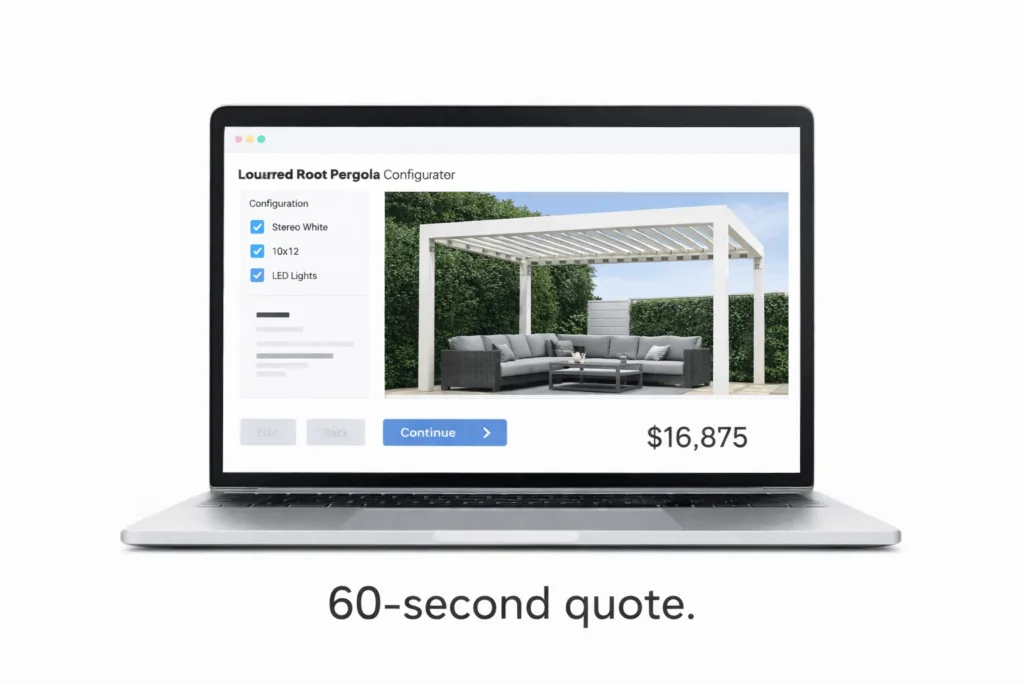 A configurator on their website let people build their pergola and see an instant price range in 90 seconds.